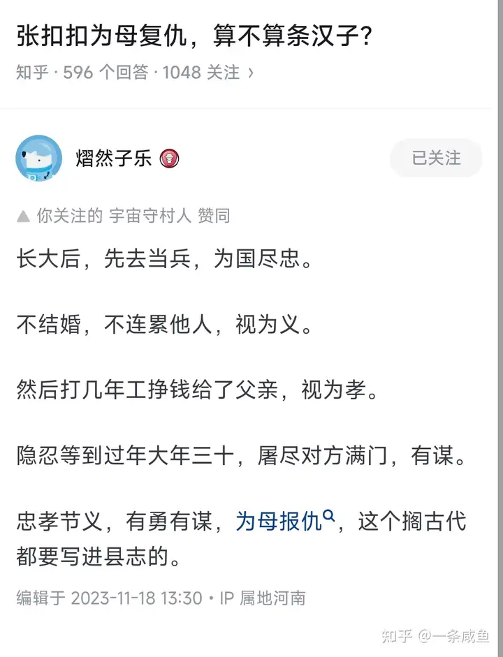 所以,张扣扣太算一条汉子了!不但如此,他简直就是英雄、让人敬仰的对象!